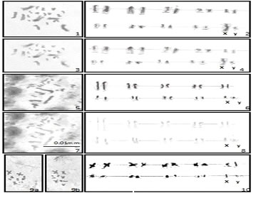 Abstract: The aim of present study was to describe the karyotype of species belonging to the genus Onthophagus and to compile the conventional cytogenetic data available in the literature for this group. Chromosomal investigations on three Onthophagus spp. viz. O. fasciatus (Boucomont, 1914), O. unifasciatus (Schaller, 1783) and O. bifasiatus (Fabricius, 1781) were analysed using conventional staining and C-banding. All the three species possessed 20 chromosomes and a modal polyphagan karyotype with Xyp as the male sex chromosome mechanism. Most of the autosomal chromosomes were metacentric or submetacentric, while X and y showed acrocentric nature. Modal chromosome number of these species showed the conservative nature of the karyotype. C-bands were located predominantly at peri-centric position. Along with this chiasma frequency, terminalisation coefficient and sperm number count were also calculated which again showed a close relationship among these species.